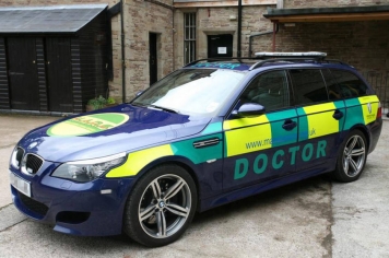 Attēlā redzamajam iepriekšējās paaudzes (E61) BMW M5 Touring ir V10 dzinējs, kas attīsta 507 zirgspēkus – un tas patiešām tiek izmantots neatliekamas palīdzības sniegšanas operācijās.