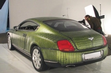 Kārtējo savdabīgo tūninga piedāvājumu sagatavojuši Krievijas meistari – pēc deviņu mēnešu ilga darba viņiem izdevies apvilkt Bentley Continental GT ar Āfrikas bifeļa ādu un nokrāsot to zaļā krāsā, panākot krokodila ādas imitāciju.