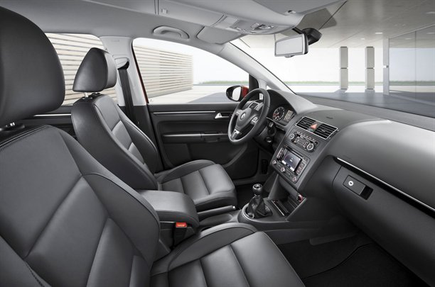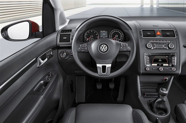Atsvaidzināts arī salons – Touran ir jauna stūre un viduskonsole, kā arī lielāks elektroniskais displejs. Arī ciparnīcu izgaismojums vairs nav tāds, kā līdz šim.