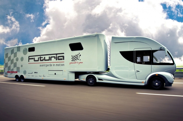 Futuria sports+spa paver jaunus apvāršņus jēdzienam „luksusa transportlīdzeklis”. Auto, kas faktiski ir savrupnams uz riteņiem, piedāvā ne tikai labiekārtotu dzīvokli, bet arī garāžu un burbuļvannu uz jumta.
