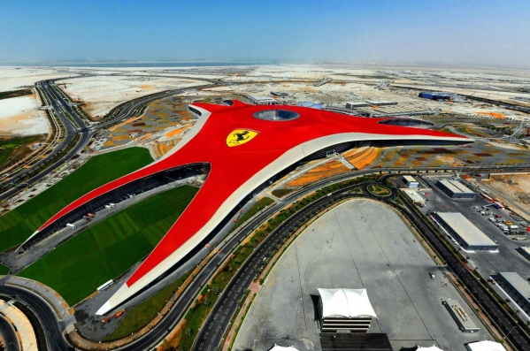 Izklaides un atrakciju parka vizuālo noformējumu iedvesmojis Ferrari GT profils. Parka jumta platība ir 200 tūkstoši kvadrātmetru un to rotā lielākā Ferrari emblēma, kāda jebkad radīta. Zem jumta atrodas 86 tūkstošu kvadrātmetru telpas, pilnas ar atrakcijām, kas padara Ferrari World par lielāko izklaides parku pasaulē.