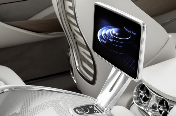 Vienlaikus F800 demonstrē arī nākamās paaudzes LED gaismas, Pre-Safe 360 drošības sistēmu, jaunu durvju atvēršanas mehānismu un jaunus apdares materiālus salonā.