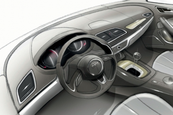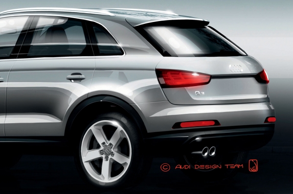 Audi laiduši klajā pirmos, „oficiālos” jaunā Q3 krosovera zīmējumus, lai gan auto pasaules pirmizrāde plānota jau šomēnes, Šanhajas auto izstādē Ķīnā.
