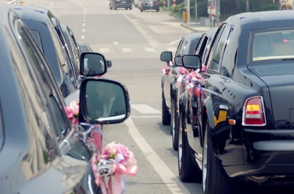 apliecina šis kāzu viesu konvojs Venžou pilsētā, ko ievērojis acīgais carnewschina.com fotogrāfs.