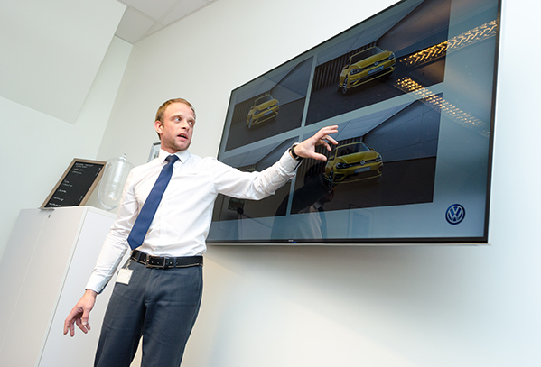 interesants. Man, protams, interesētu jaudīgākā – GTI versija, jo ikdienā braucu ar BMW un man patīk, ka zem motora pārsega ir jaudas rezerve. Tas, kas šajā auto ir foršs, manuprāt ir 8 collu infosistēmas ekrāns. Priekšējais panelis izskatās daudz pieklājīgāk, salīdzinot ar līdzšinējo Golf. Izmantojot Bluetooth savienojumu, ir ļoti ērti pieslēgt telefonu un klausīties mūziku. Skaņas kvalitāte gan gluži nav, kā man gribētos, taču ir ļoti ērti orientēties sistēmas izvēlnēs – gandrīz kā BMW iDrive. Es domāju, ka bagāžas nodalījuma izmērs ir pilnīgi pietiekams maniem makšķerēšanas un sporta piederumiem, kā arī nedēļas nogales izbraucieniem ar bērniem. Kopumā braukšana ar Golf ir patīkama, vadītāja sēdeklis ir komfortabls un visas kontroles ierīces salonā ir ērti izvietotas. Interesanti, ka Golf papildaprīkojumā tagad ir tādas pat biznesa klases auto cienīgas opcijas kā jaunākajā 5.sērijas BMW – piemēram, iespēja atsevišķas funkcijas kontrolēt ar žestiem.